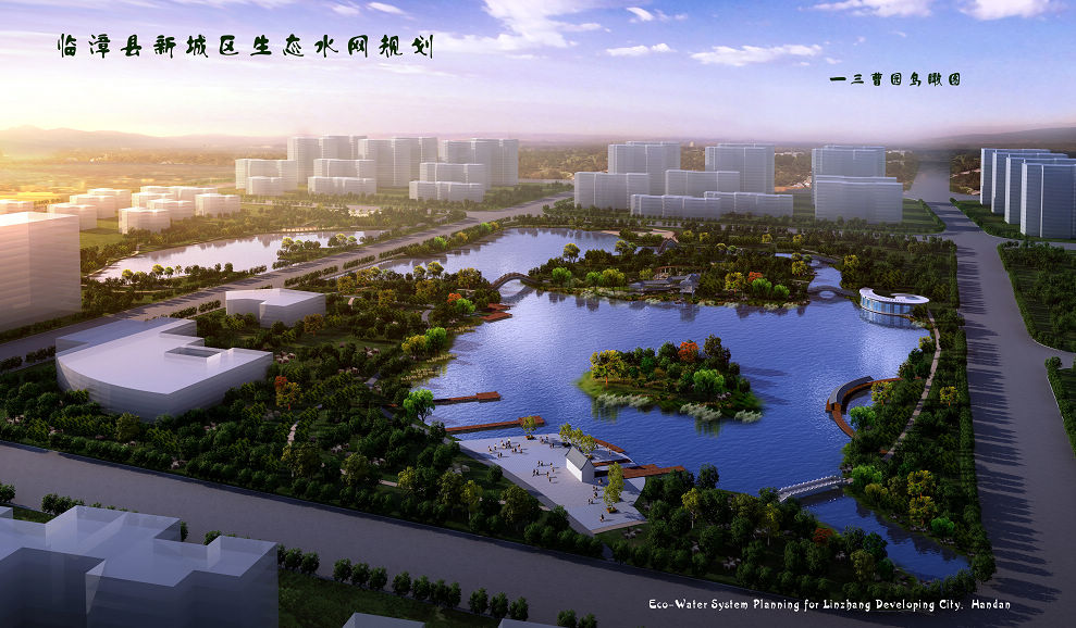 通过增加城市水面、增加城市绿地的方式提高城市生态环境质量,统筹规划建设“绿网、绿带、绿点”,并寓邺城文化于绿化之中,优化绿化布局,提升绿化品位,突出城市特色。在城市水面上,将民有南、北干渠的水引入城区,将城区内原有的河流、坑塘连接起来,沿途以人工湖作点缀,打造秀美水景,依托城区内河流水系、城市绿化带及城市主题公园,再现临漳历史文化特色。实现“北方水城,具有古邺文化特色的园林城市”这一风貌特色。